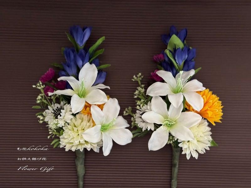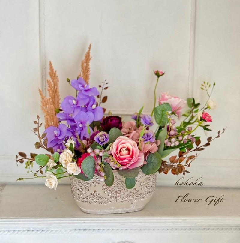 基本はアーティフィシャルフラワーを使いますが、プリザーブドフラワーも追加代金で承れます。希望の方は通信欄にその旨お書き下さい。
